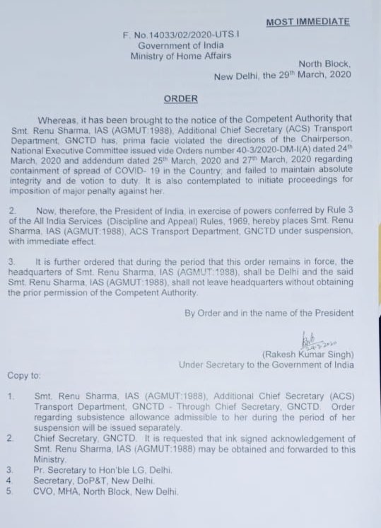 Renu Sharma’s suspension order has caused some sort of havoc among Delhi’s powerful elites. This is quite unique and a severe punishment. However, it must be said that there is nothing wrong with this order. She has allowed DTC buses to take migrant workers from different parts of Delhi and dump them at the UP border. There are also many videos showing announcements made overnight that DTC buses will be available for the same and workers will get UP Government buses at the border.